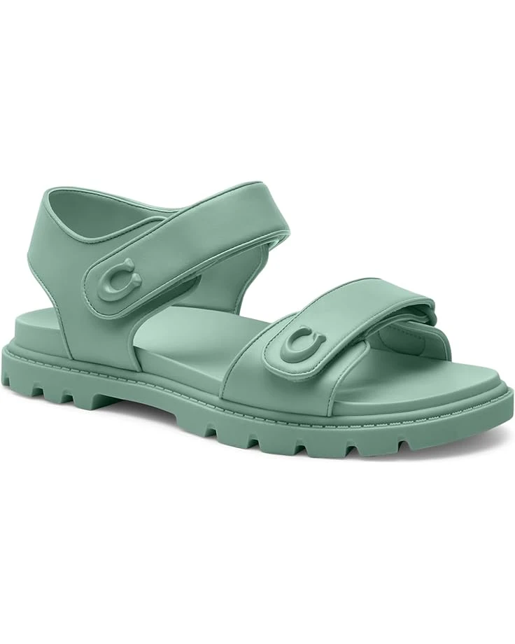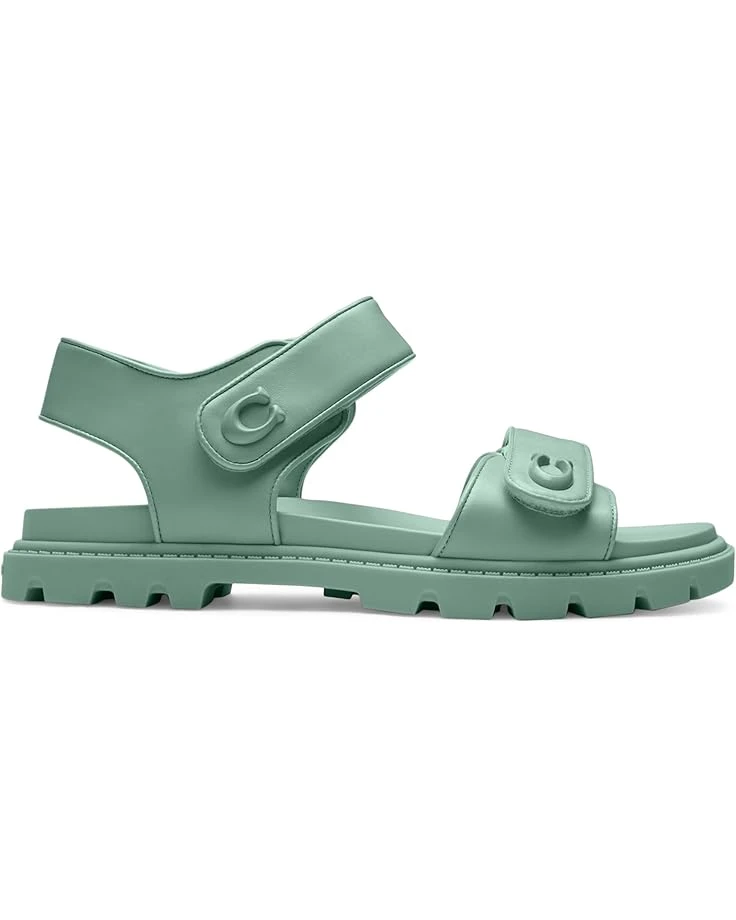 - Step out in effortless style in the COACH® Brynn Leather Sandal. These sandals feature a round, open toe silhouette, branding hardware on straps, a canvas and man-made leather upper, man-made leather lining and insole, and adjustable hook-and-loop closure straps.
