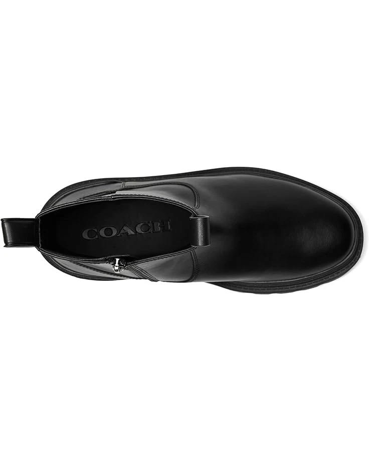 - Complement your sleek and sophisticated style with the COACHâ„¢ Caiden Boot. These boots feature an inside zipper closure, round toe silhouette, pull tabs in front and back for easy entry, crafted from a leather upper, man-made leather lining, and leather insole.