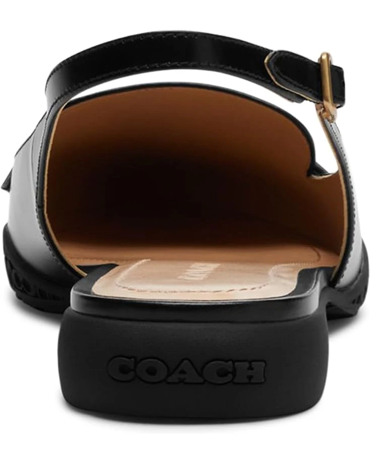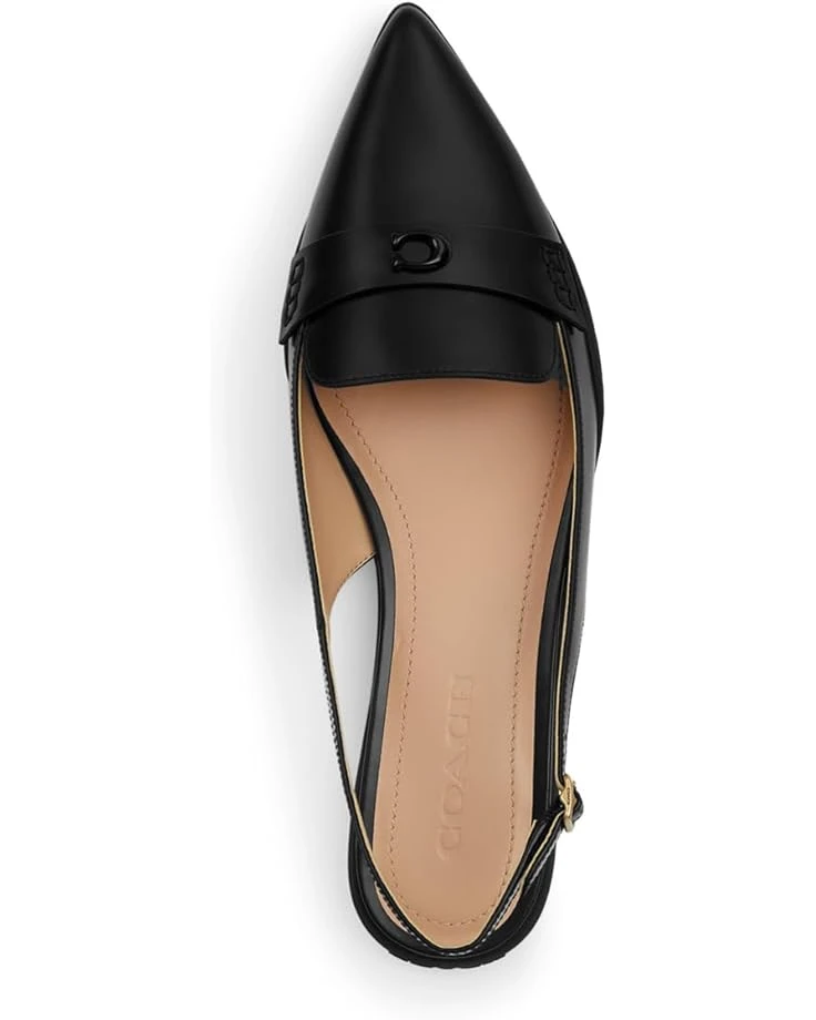 - Maintain your effortlessly chic style from morning to night in the COACH® Carrie Skimmer shoes. These flats feature a pointed toe silhouette with an adjustable slingback buckle closure, leather upper with branding emblem on vamp, man-made leather lining, and a leather insole.