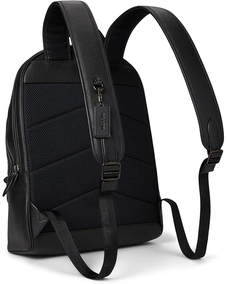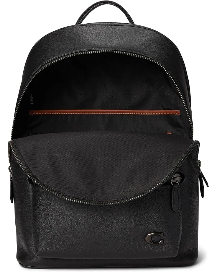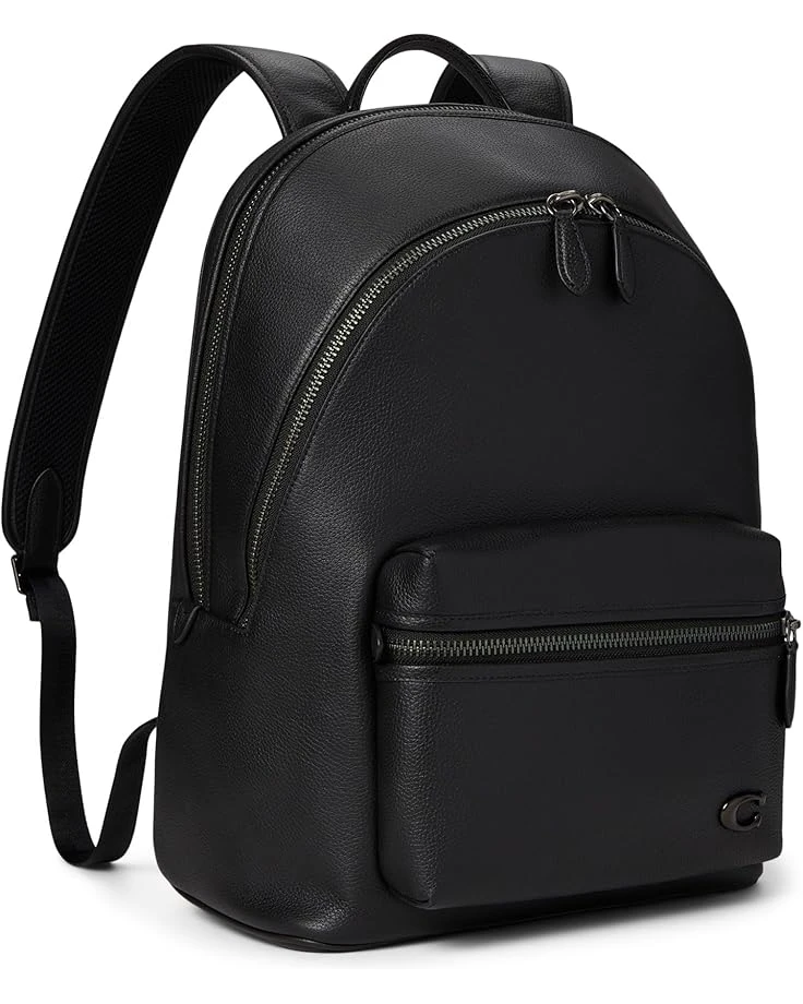 - From the busy work week to weekend adventures, keep your essentials organized with ease in the COACH™ Charter Backpack. Crafted from soft polished pebble leather, this backpack features a dual zip-closure, adjustable shoulder straps, an inside zipper pocket, cell phone pocket, tech sleeve, and can fit a 16 inch laptop.