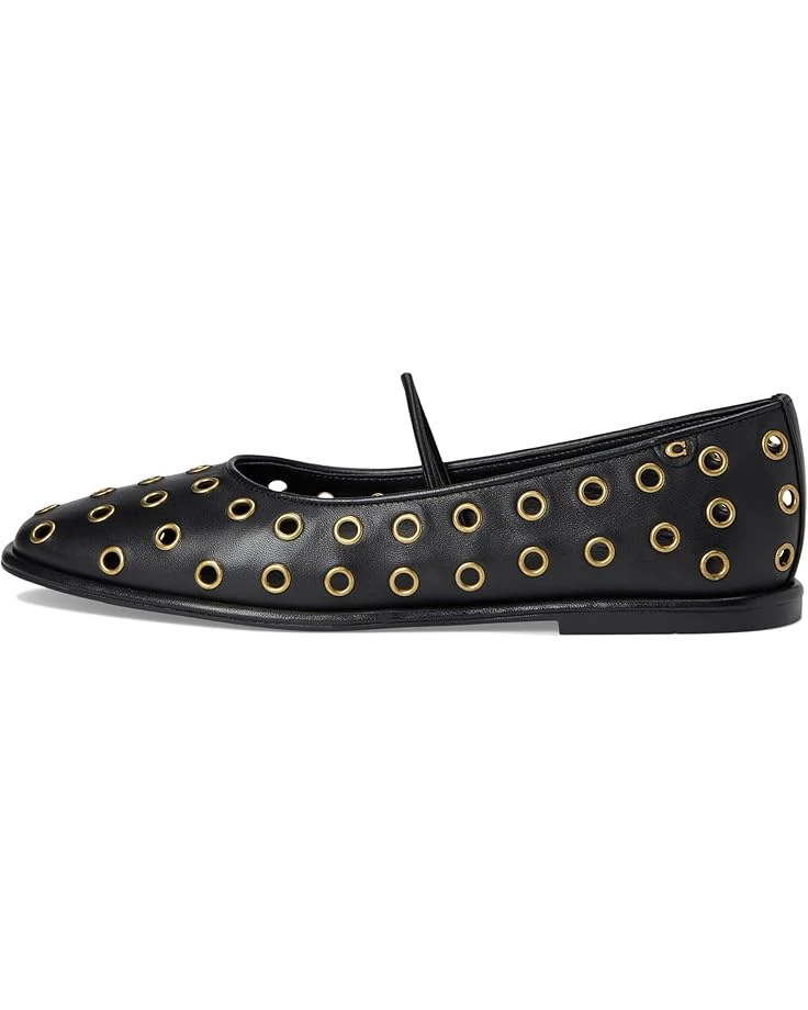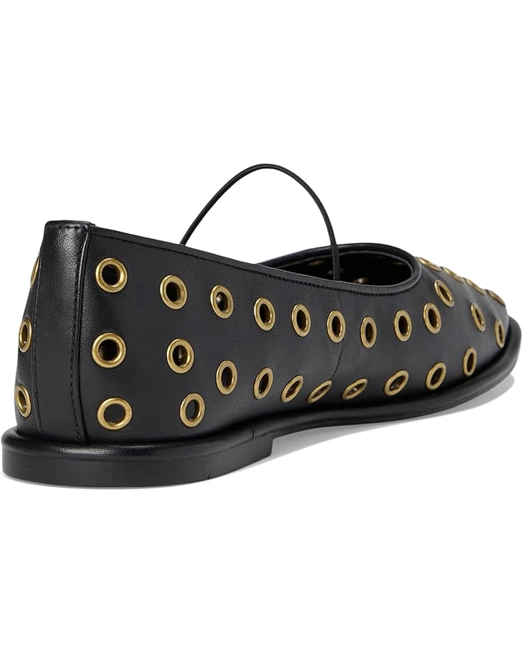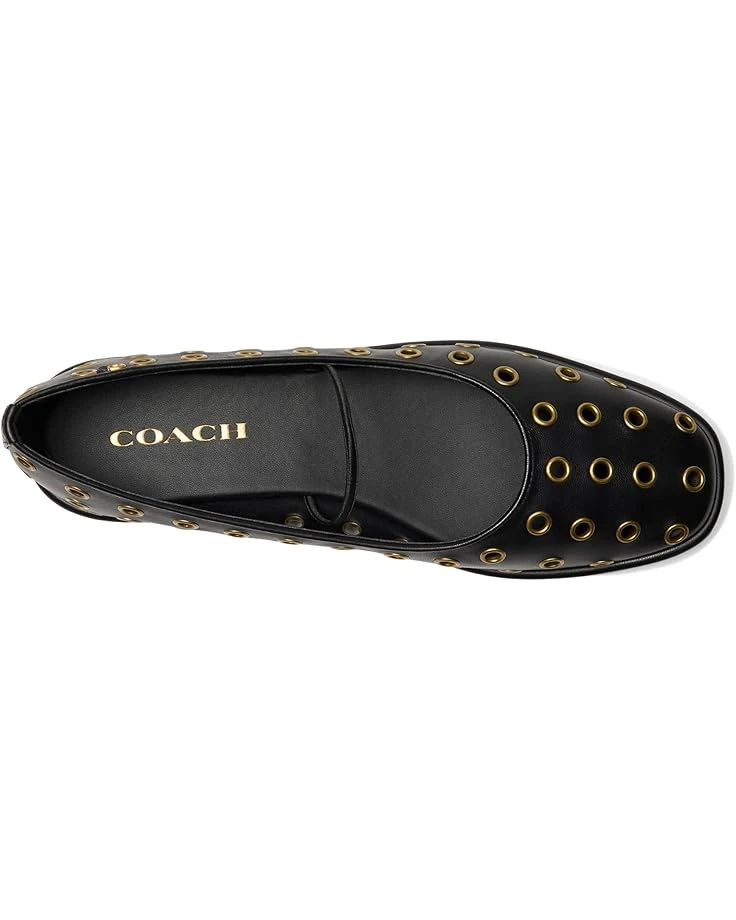 - Featuring metal grommets allover, the COACH® Emilia Mary Jane with Grommets are perfect to pair with casual styles and formal outfits. They are made of a leather footbed and faux leather lining, making them both comfortable and durable. The leather upper features a slip-on styling for easy wear. These leather flats offer a stylish appeal without compromising comfort.