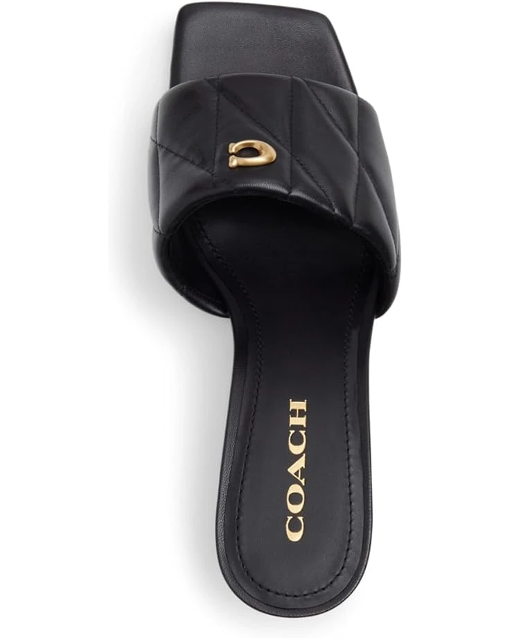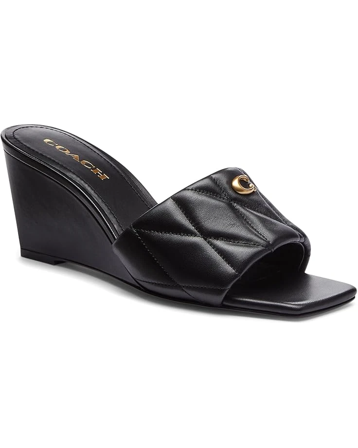 - Simple yet impressive, the COACH® Emma Wedge Heels are framed in a modern open square toe silhouette with a logo-accented, quilted leather upper, a soft man-made leather lining, and a lightly padded leather footbed. Coming in a slip-on style, the shoes are perfect for the woman on the go.