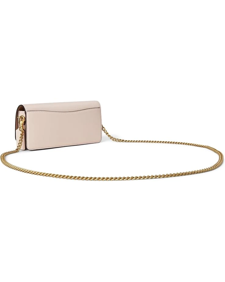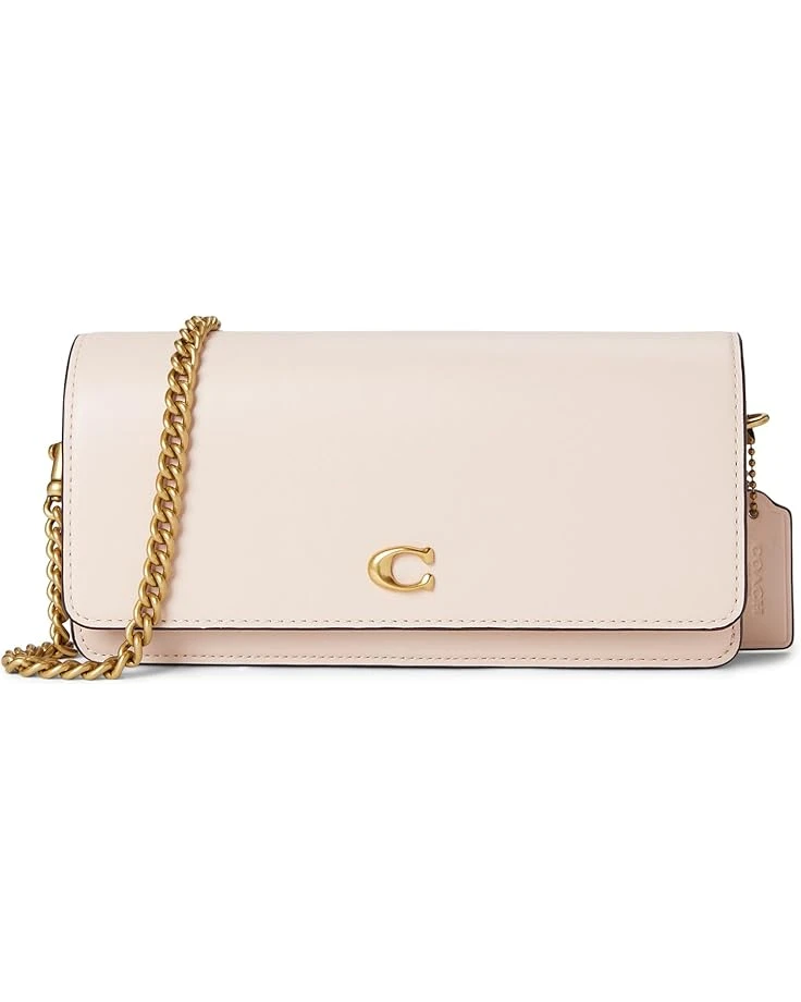 - Enhance your casual style by carrying COACH® Essential Long Wallet Crossbody Bag, crafted with refined calf leather and a leather lining. It features an easy snap closure with an external pocket, a spacious interior with six credit card slots, a billfold compartment, and open pockets with an internal zip pocket for coins. The signature hardware detailing on the front ensures brand authenticity and the detachable chain strap allows easy for shoulder or crossbody wear.