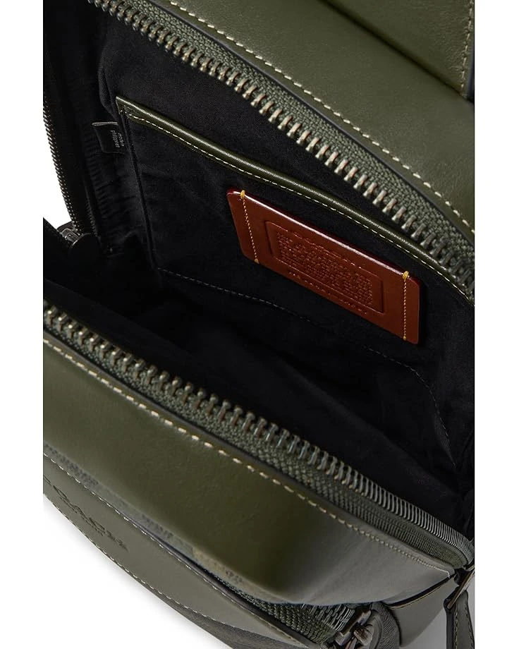 - Crafted from Signature coated canvas and refined calf leather, the COACHâ„¢ Gotham Pack In Signature Camo Print keeps your essentials organized. Featuring a zip-closure, interior multifunction pockets, exterior zip-closure pockets and an adjustable shoulder strap for crossbody wear.