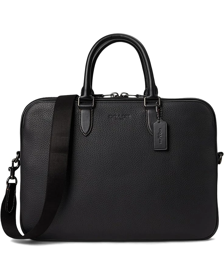 - Busy day at the office? No worries. Keep your important essentials organized in the COACH™ Gotham Slim Briefcase. Crafted from textured pebble leather and refine leather, this briefcase offers a top zipper closure, interior snap pocket, and a detachable strap that can be used for shoulder or crossbody wear.