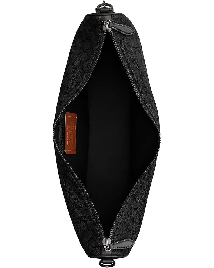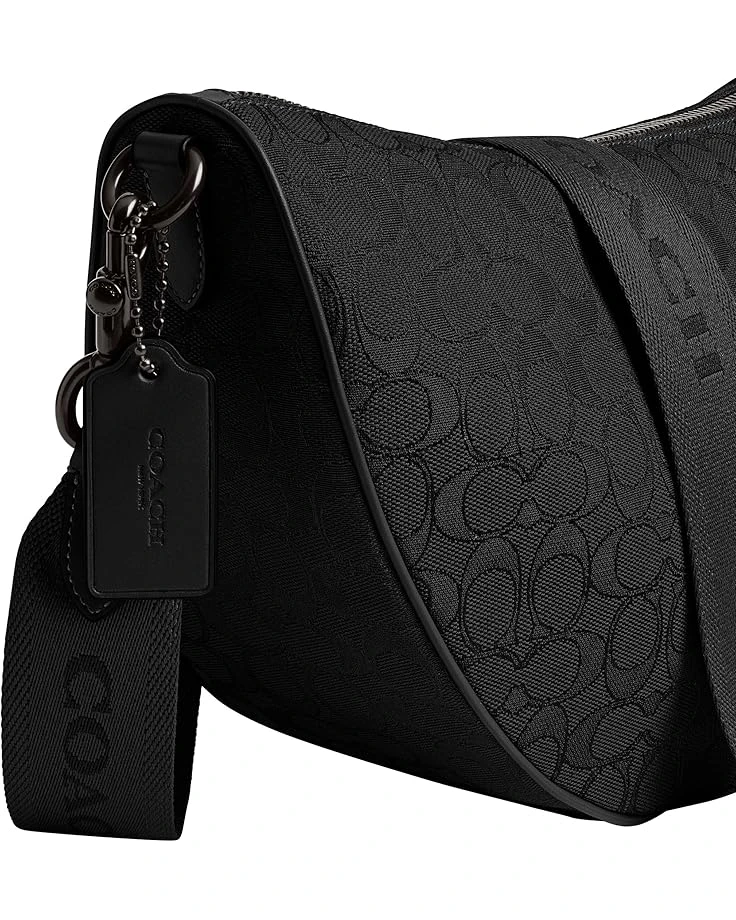 - A statement piece designed for those who move with confidence: COACH™ Hall Soft Sling Bag 45. Crafted from signature jacquard and refined calf leather, this sleek essential exudes timeless sophistication. The zippered top closure keeps your essentials secure, while the fabric-lined interior offers a refined touch. Wear it your way with the detachable strap, transitioning seamlessly from crossbody to handheld. Need extra storage? The removable round pouch is perfect for stashing small must-haves. With one spacious compartment and an interior pocket, this bag blends style and function in perfect harmony.