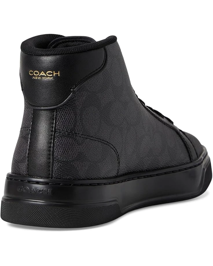 - The COACHâ„¢ High Line High Top Sneakers In Signature Canvas are a great choice to match your different outfits and looks. They are made of an EVA insole and polyester lining. The signature coated canvas and leather upper features a lace-up closure for a perfect fit.