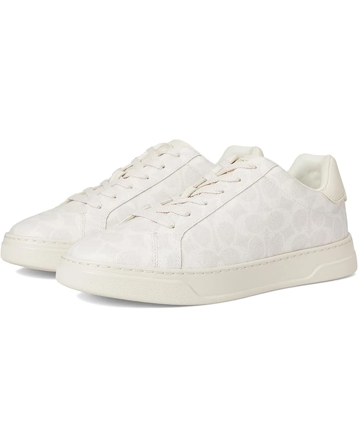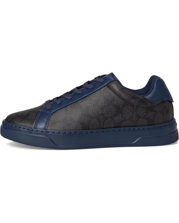 - Made of a signature coated canvas and leather upper, the COACHâ„¢ High Line Sneaker In Signature Canvas makes a stylish addition to your footwear collection. Their lace-up closure offers a secure fit. These leather sneakers are designed with an EVA insole and polyester lining, making them both comfortable and durable. Walk with style and grab everyone’s attention wearing these lace-up sneakers.