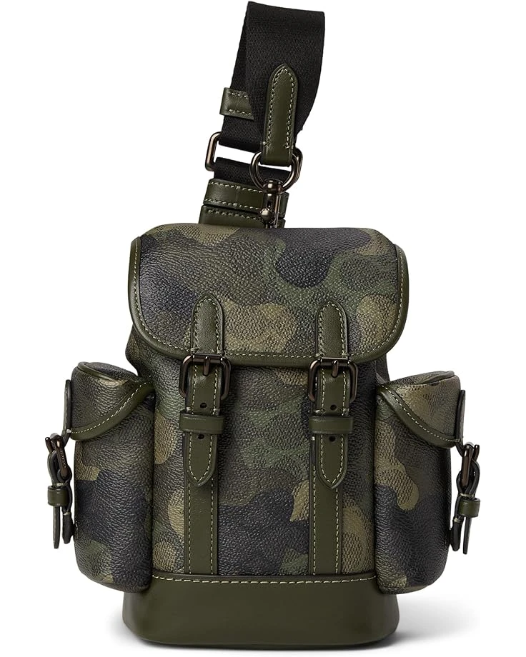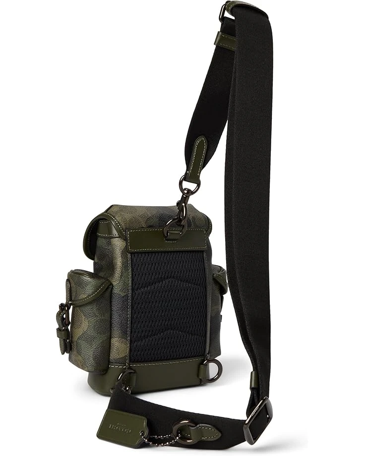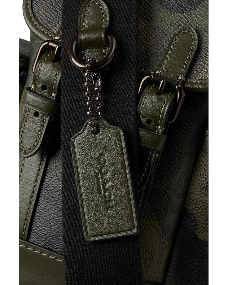 - Introducing the COACH™ Hitch Backpack 13 In Signature Camo Print Bag, featuring a convertible webbing crossbody strap that allows you to switch between carrying styles effortlessly. The exterior side flap pockets are perfect for holding a large phone, cash, cards, and keys, while the interior multifunction pocket helps keep your items organized. With a flap and snap closure, your belongings will stay secure.