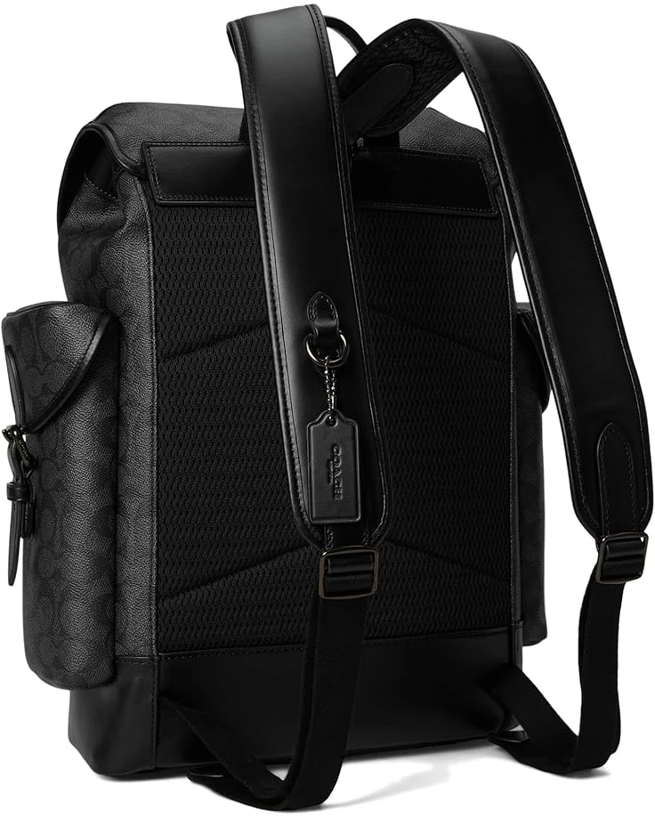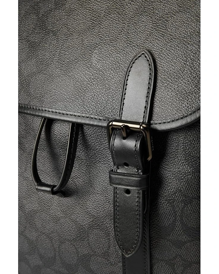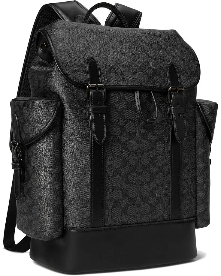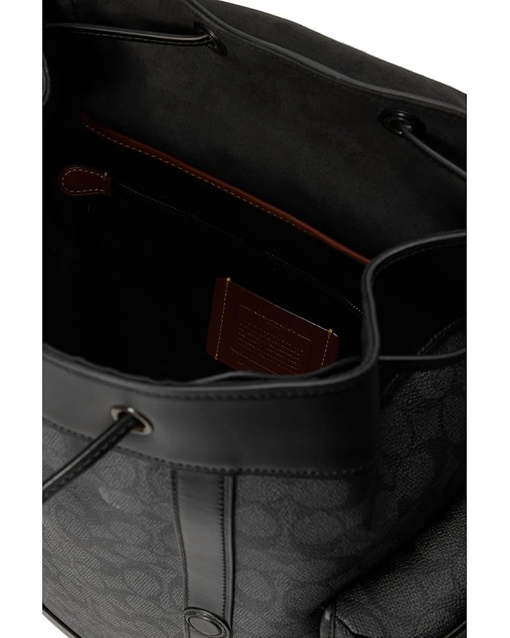 - Carry your essentials in effortless style with the COACH™ Hitch Backpack In Signature Canvas. Crafted from signature coated canvas and refined leather, this backpack features an inside zipper pocket, cell phone and multifunction pockets, inside laptop sleeve, and drawstring and snap closure.