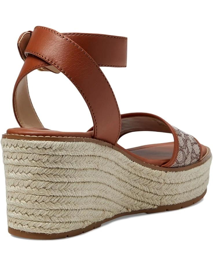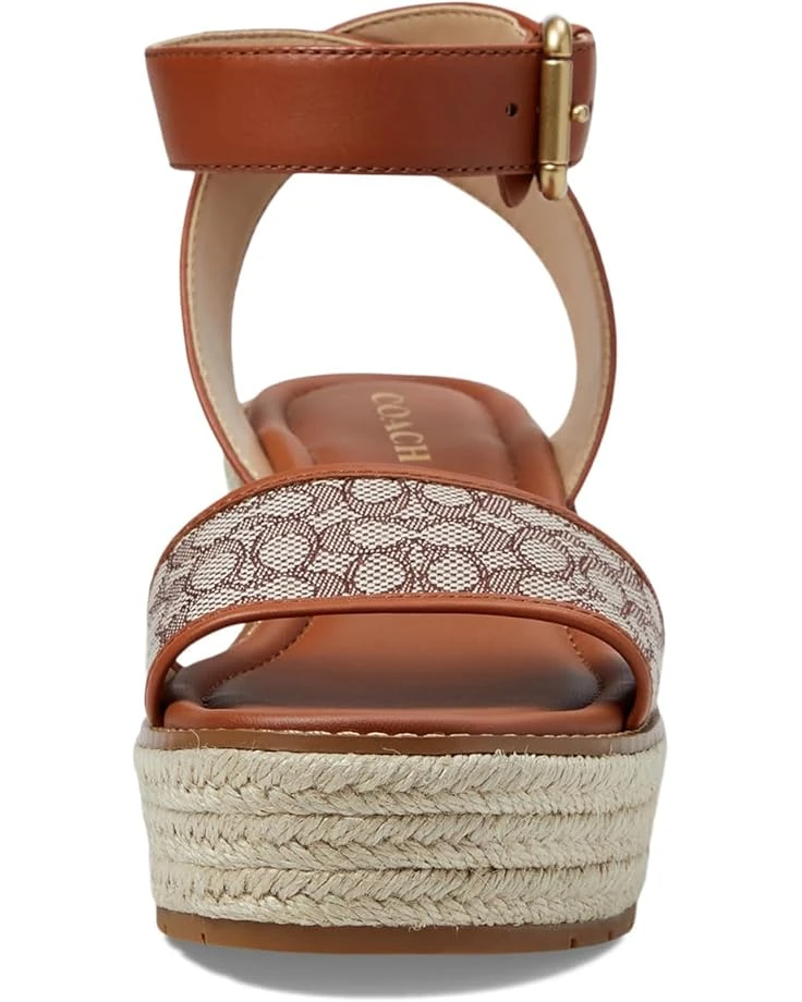 - Complement your chic style this warm weather season in the COACH® Katherine Micro Signature Jacquard Espadrille. Featuring a jacquard and leather upper, a round open toe silhouette, branding on upper, a jute wrapped heel, and an adjustable buckle closure.