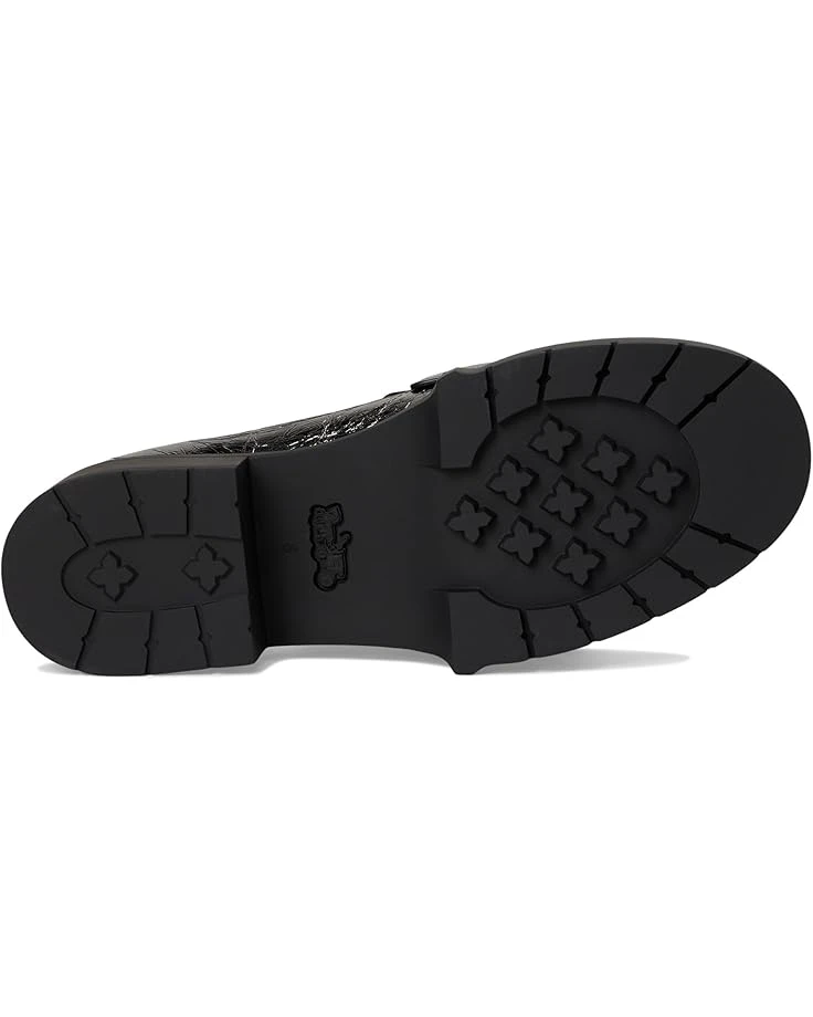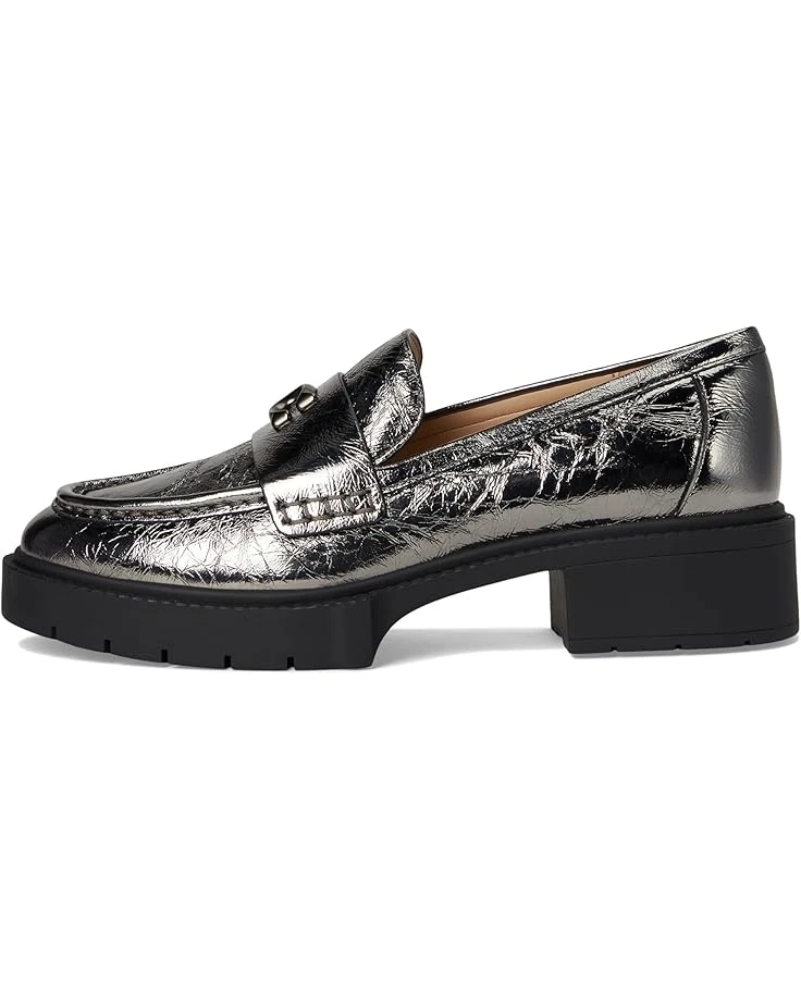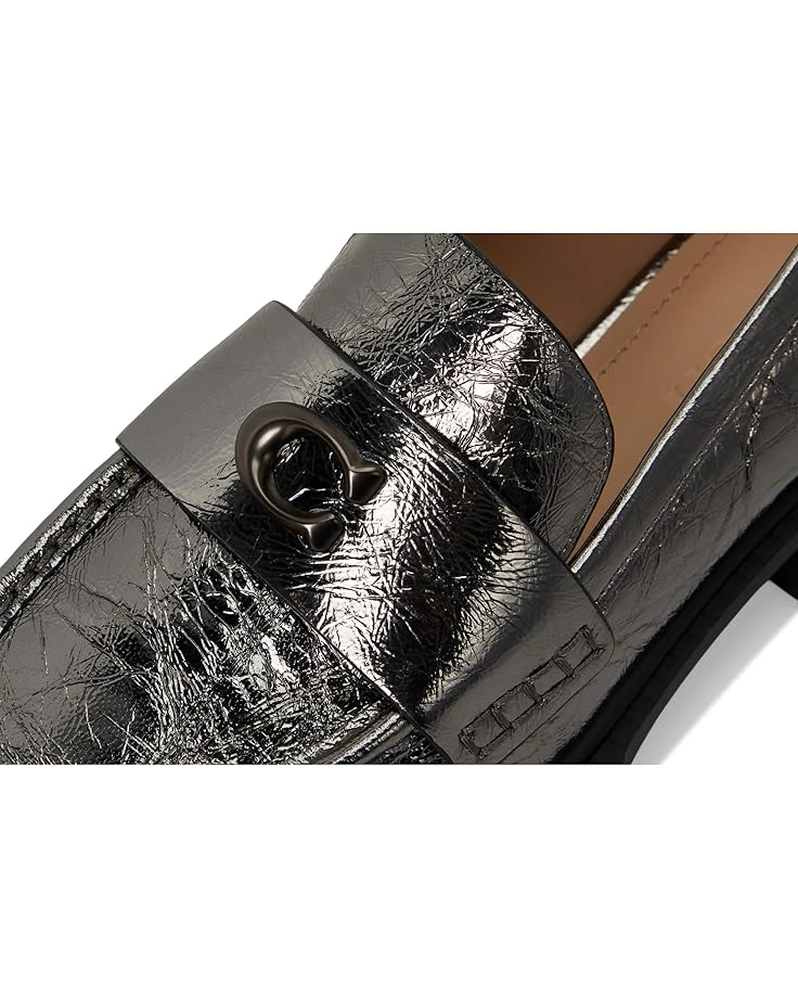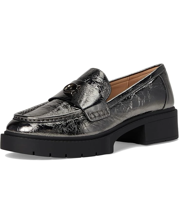 - Make a statement in the timeless COACH® Leah Crinkle Metallic Loafer. Crafted from a metallic leather upper, these slip-on loafers offer a round toe silhouette, man-made leather lining and insole, and a block heel with branding hardware on the vamp.