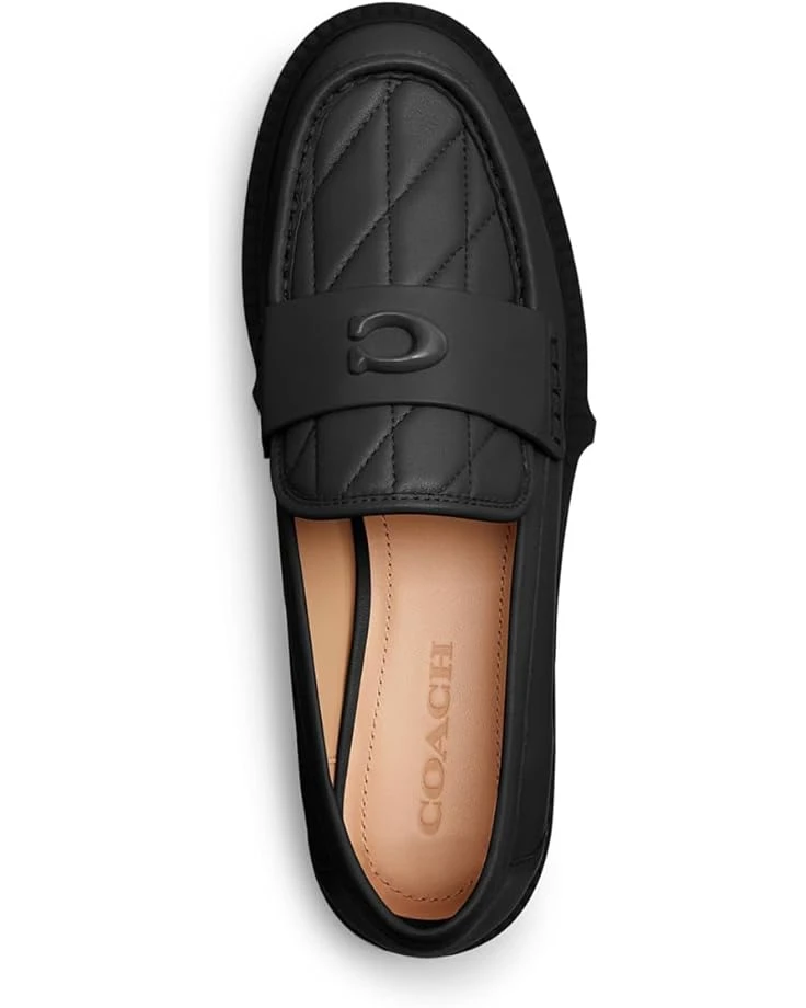 - Timeless style makes a bold statement with the COACH™ Leah Loafer with Quilting. The loafer-style uppers feature quilted accenting, branded hardware, and closed, roe toe silhouettes. The faux-platform design is paired with block heels for a classic look with a bold twist.