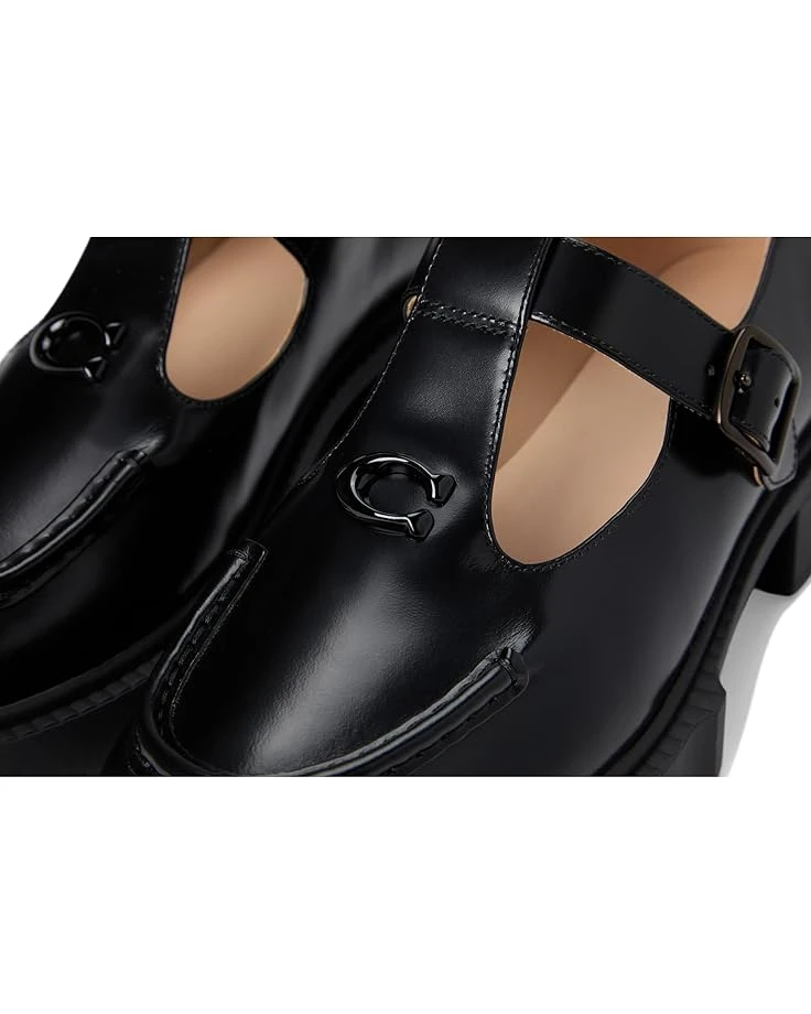 - Make your style statement wearing the COACH® Liv Mary Jane shoes. These platform loafers are crafted with a rubber insole and faux leather lining. The leather upper features an ankle strap with an adjustable buckle closure for a secure fit. Stylish and durable, these leather loafers are comfortable to wear for long hours.