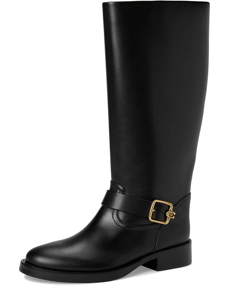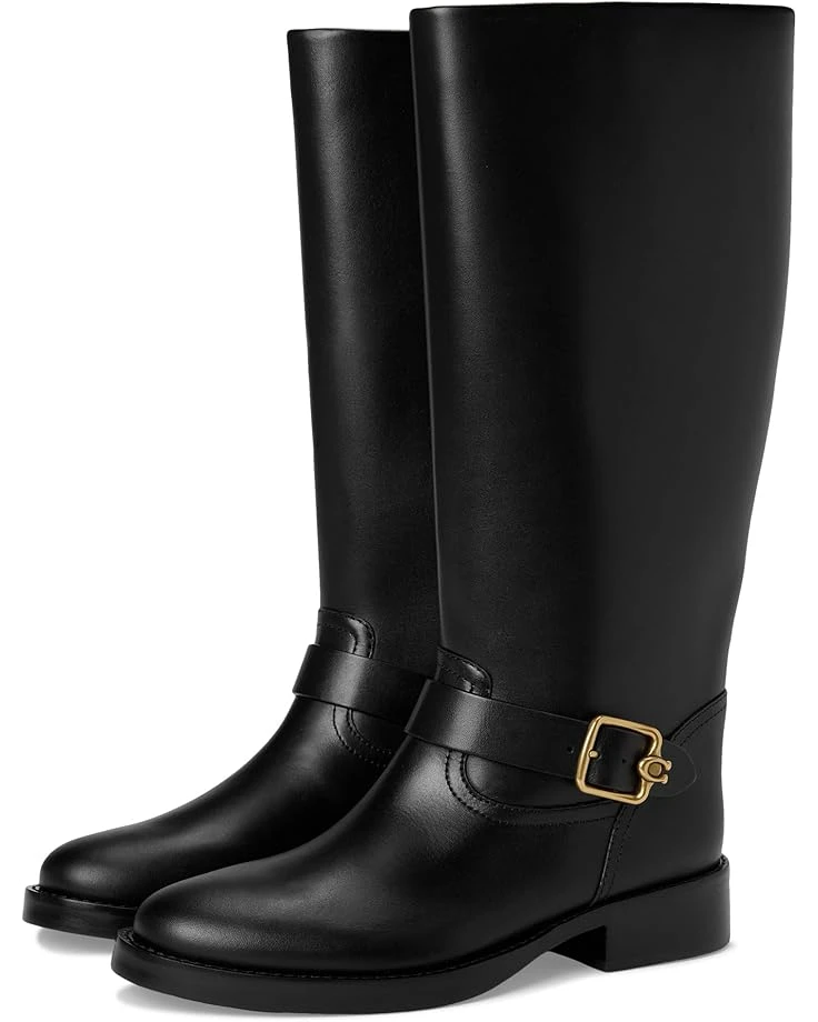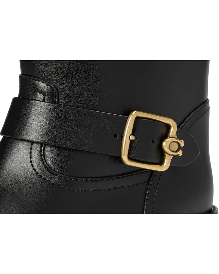 - Complement your sleek and chic style with the COACH® Madeline Leather Boots. These boots feature a leather upper, side zipper closure, round toe silhouette, buckle detailing with signature metal hardware, leather and textile lining, and a leather insole.