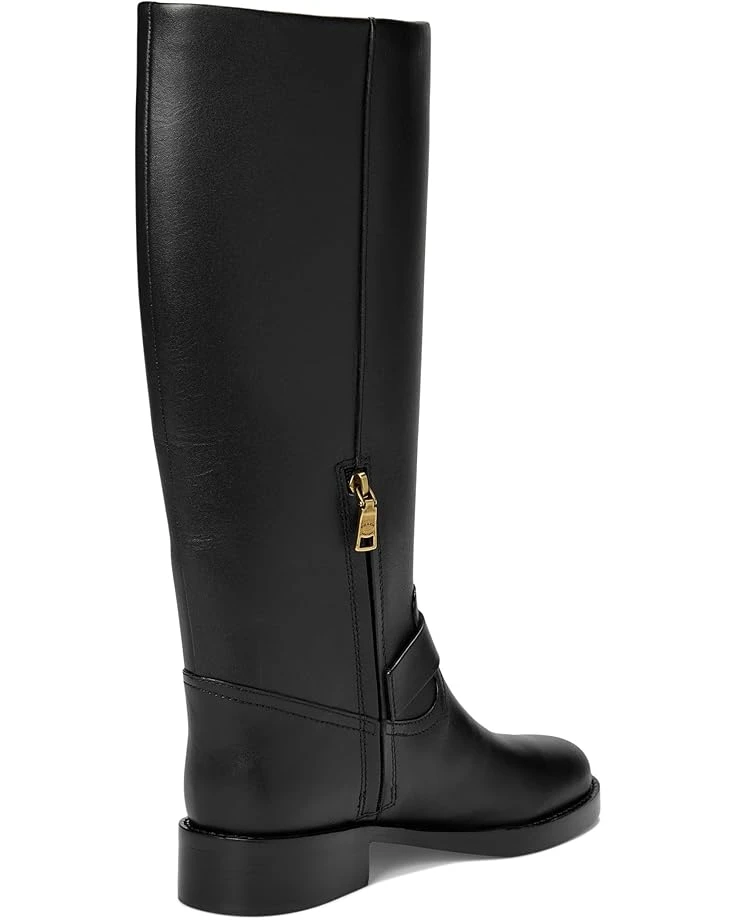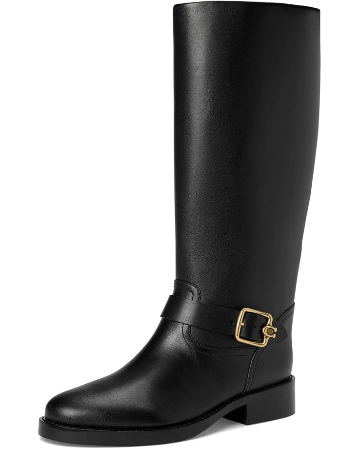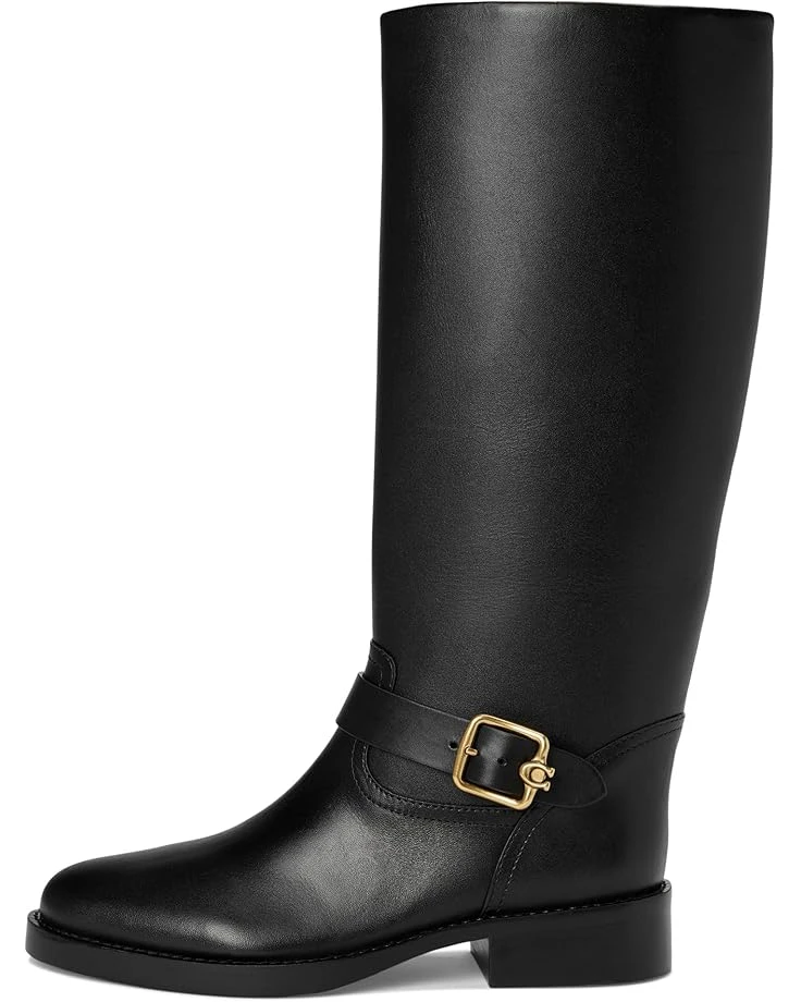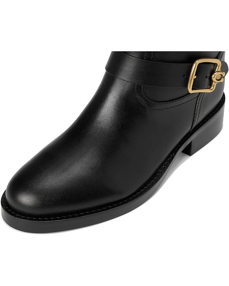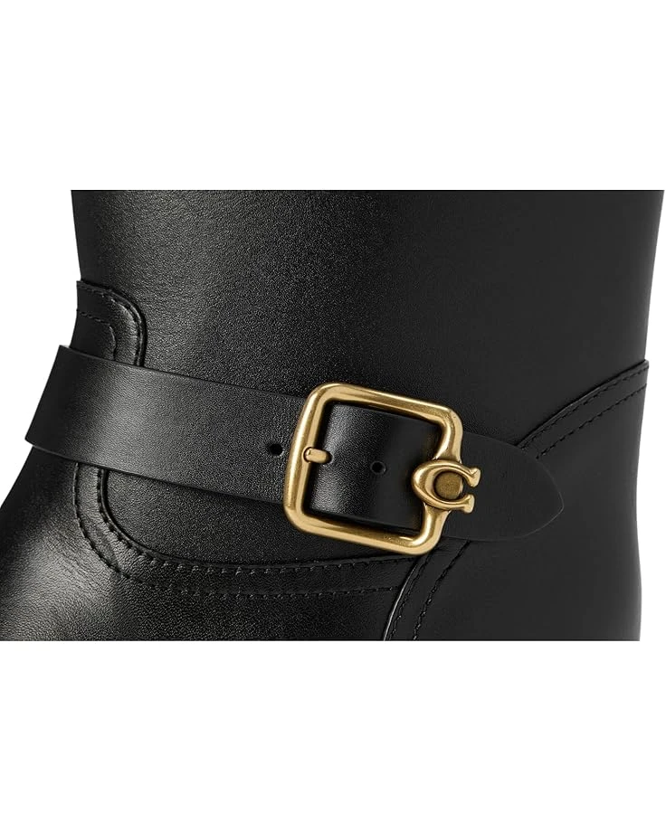 - Complement your sleek and chic style with the COACH® Madeline Leather Boots. These boots feature a leather upper, side zipper closure, round toe silhouette, buckle detailing with signature metal hardware, fabric lining, and a leather insole.