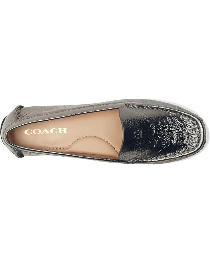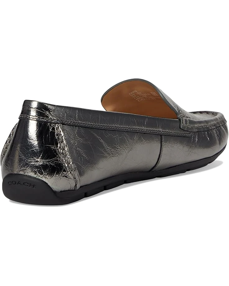 - Elevate your classic style in the COACH® Marley Crinkled Metallic Driver. These slip-on shoes are crafted from a metallic leather upper, man-made leather lining and insole with a moc toe silhouette and metal branding hardware on vamp.