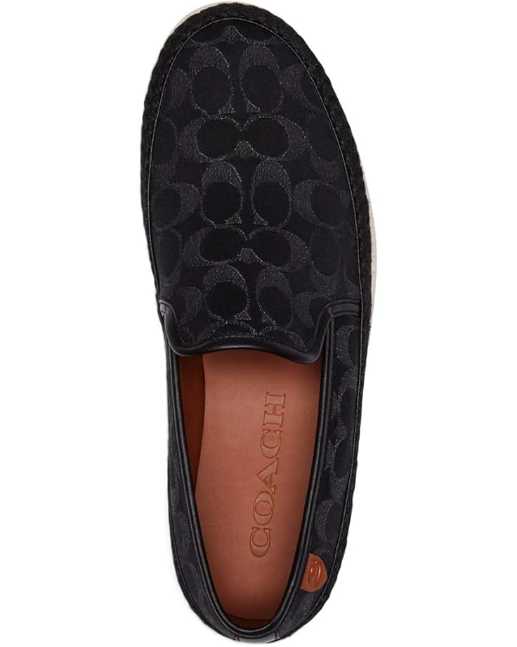 - Give a supersoft touch to your feet on every step for an effortless movement wearing COACH™ Miles Espadrille. It features leather upper, man-made lining, and leather footbed. A round toe, low-top design, and signature embossing allover give a stylish yet comfortable touch to the footwear.