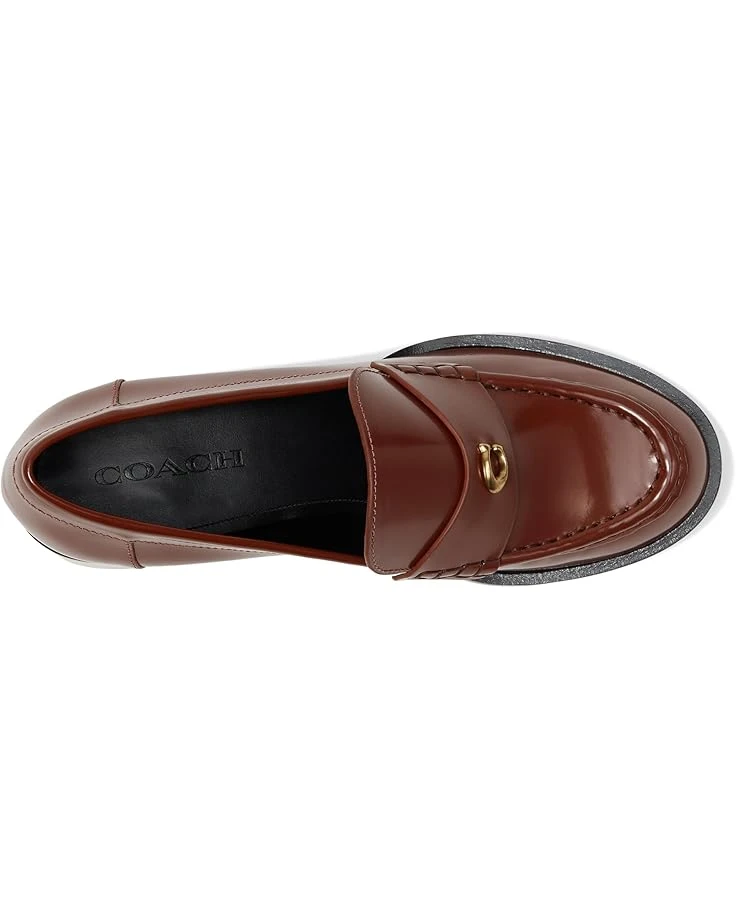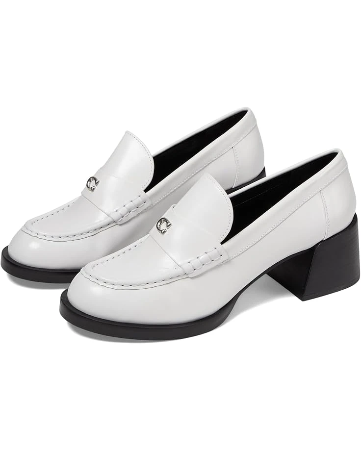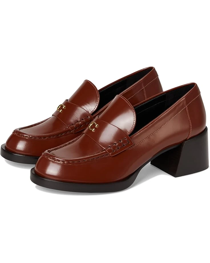 - Step out in sleek and sophisticated style in the COACH® Natalie Loafer. This slip-on style shoe features a round toe silhouette, strap on vamp with branding emblem, suede or leather upper, and a chunky, flared block heel.
