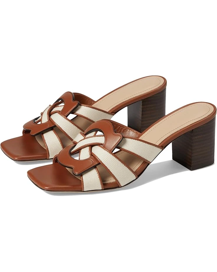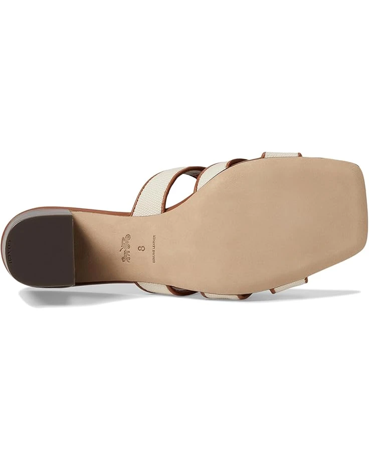 - With the COACH® Nikki Canvas Sandals, you can bring a modern update to your everyday style without losing your desired comfort. Displaying an eye-catching mix of leather and textile upper with interlocking signature detailing, these slip-on shoes are sculpted in an open square toe silhouette perfectly balanced by a sturdy block heel.