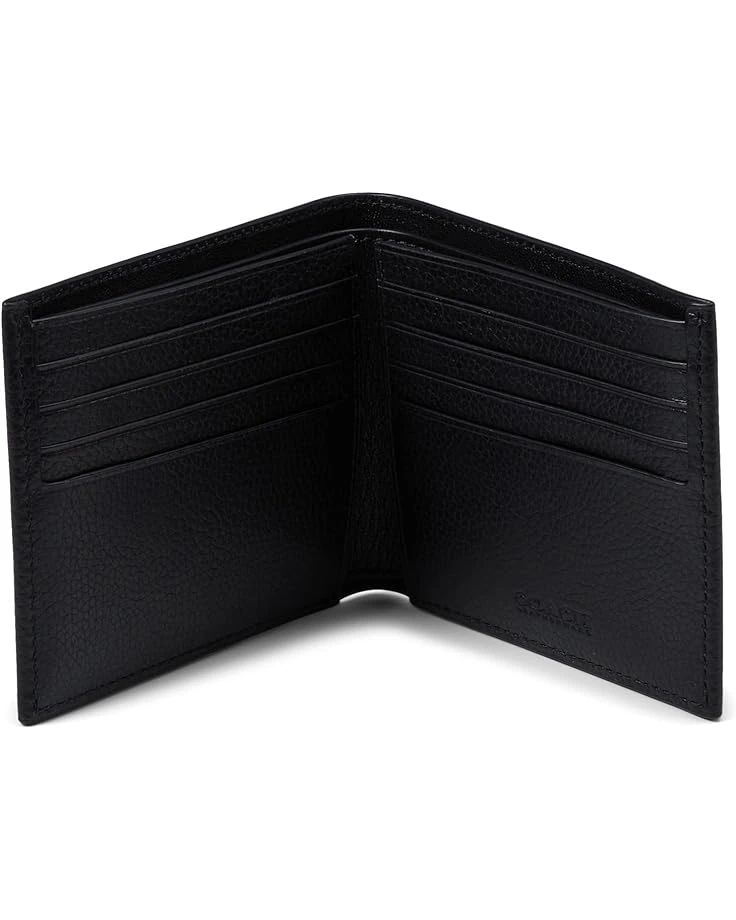 - Make your lifestyle convenient and easygoing getting this COACHtm) Refined Double Bill in Pebble Leather w/ Sculpted C Hardware Branding wallet. The wallet has bifold design and card slots for convenience of card storage.