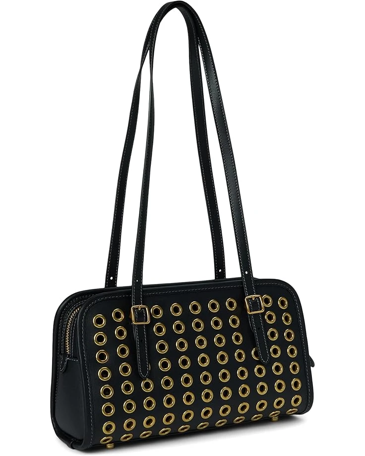 - Crafted from glovetanned leather, the COACH™ Swing Zip Bag with Grommets give your everyday style some added flair with grommets on the exterior and a top zipper closure. This bag also features adjustable handles, an interior zip pocket, one credit card slot, and four protective feet at the base.
